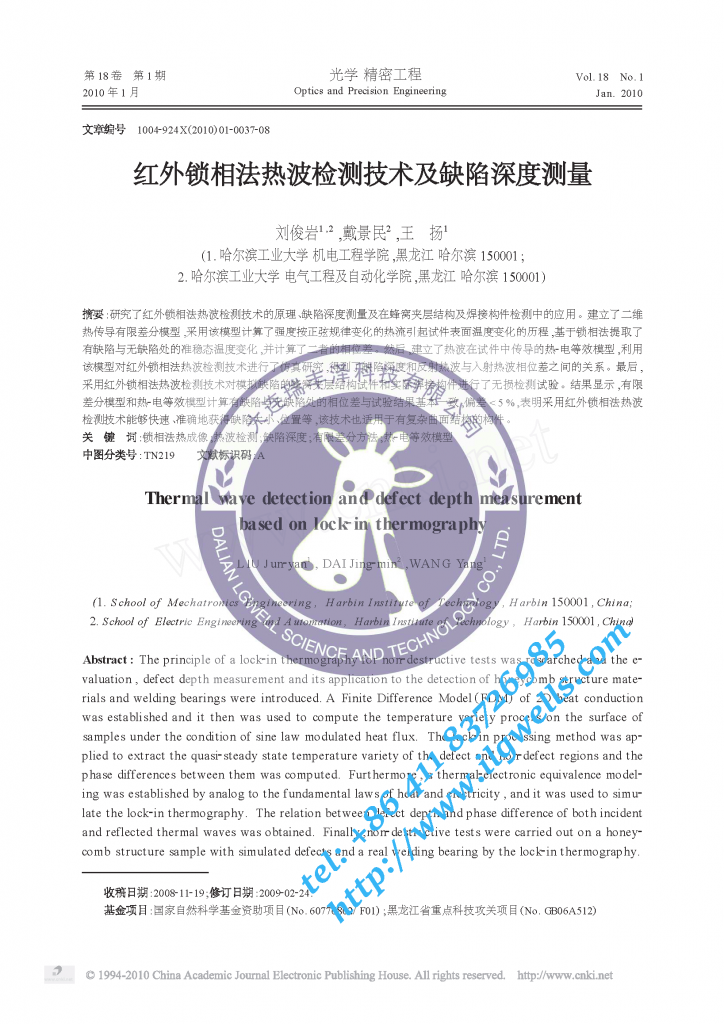 紅外鎖相法熱波檢測(cè)技術(shù)及缺陷深度測(cè)量